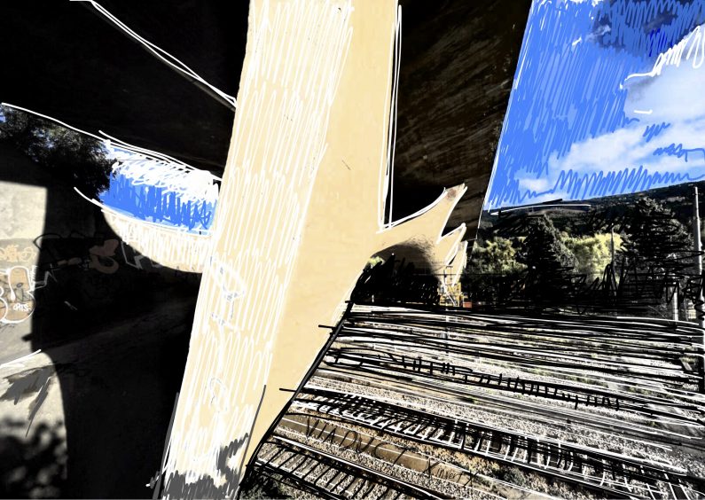 The first movement, ‘Musmeci’s Concerte’, traces my own experience of walking through the substructure of the bridge, which features wavelike shapes that undulate slowly downward and outward. In the music, the pianist very slowly expands the range of the music throughout the entire movement in a series of wavelike patterns. The pianist is asked to play many different rhythms on top of one another, imaging how different speeds can represent different curves on the bridge. Finally, the musical material itself—sharp, icy, repeated notes—draw inspiration from the material of concrete; something not often thought of as beautiful, yet an infinitely malleable material.